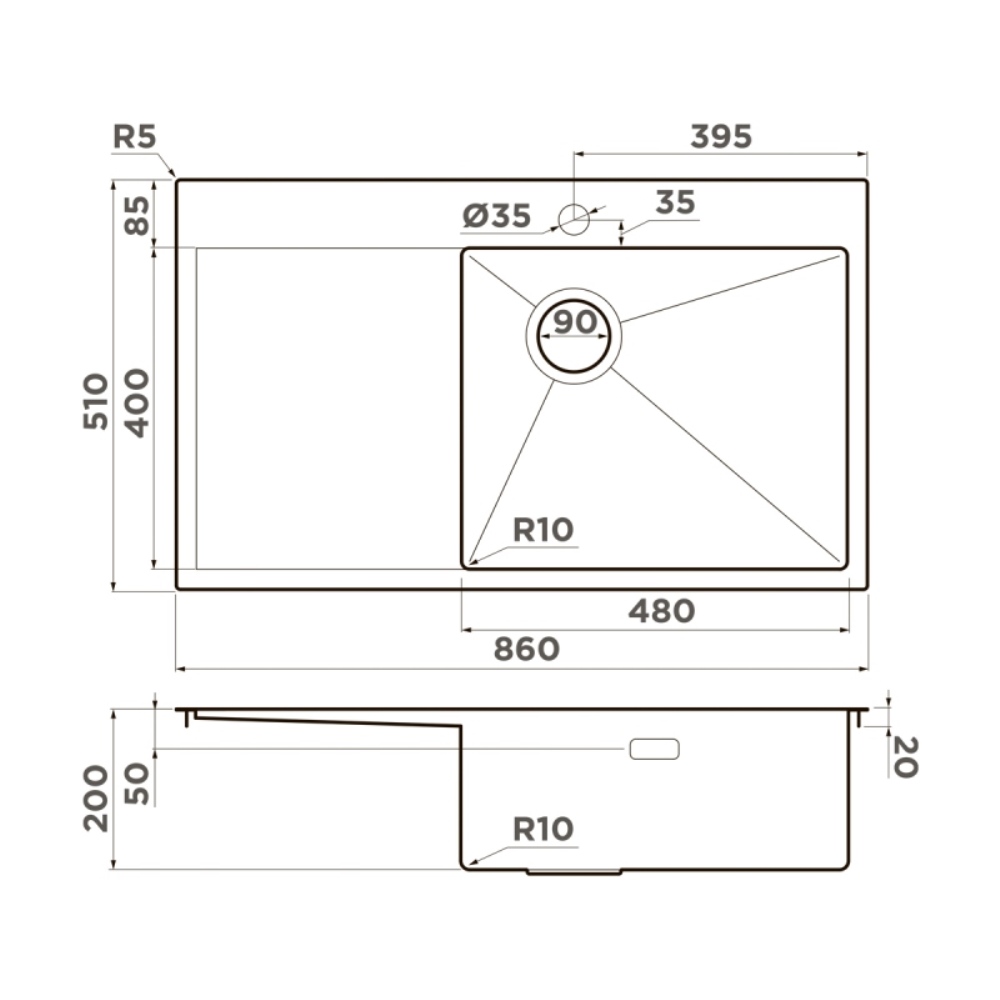 Мойка кухонная Omoikiri из коллекции Akisame 86-LG-R Side имеет размеры 860х510 мм., изготовлена из нержавеющей стали. Форма — прямоугольная, одна чаша с отверстием для смесителя. Сифон в комплекте. Ширина чаши 48. Врезной монтаж. Имеется крыло.