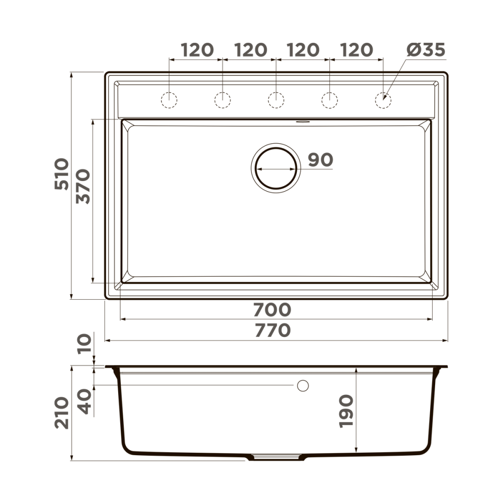 Мойка кухонная Omoikiri из коллекции Daisen 77-ES имеет размеры 770х510 мм., изготовлена из искусственного гранита. Форма — прямоугольная, одна чаша без отверстия для смесителя. Сифон в комплекте. Ширина чаши 70. Врезной монтаж