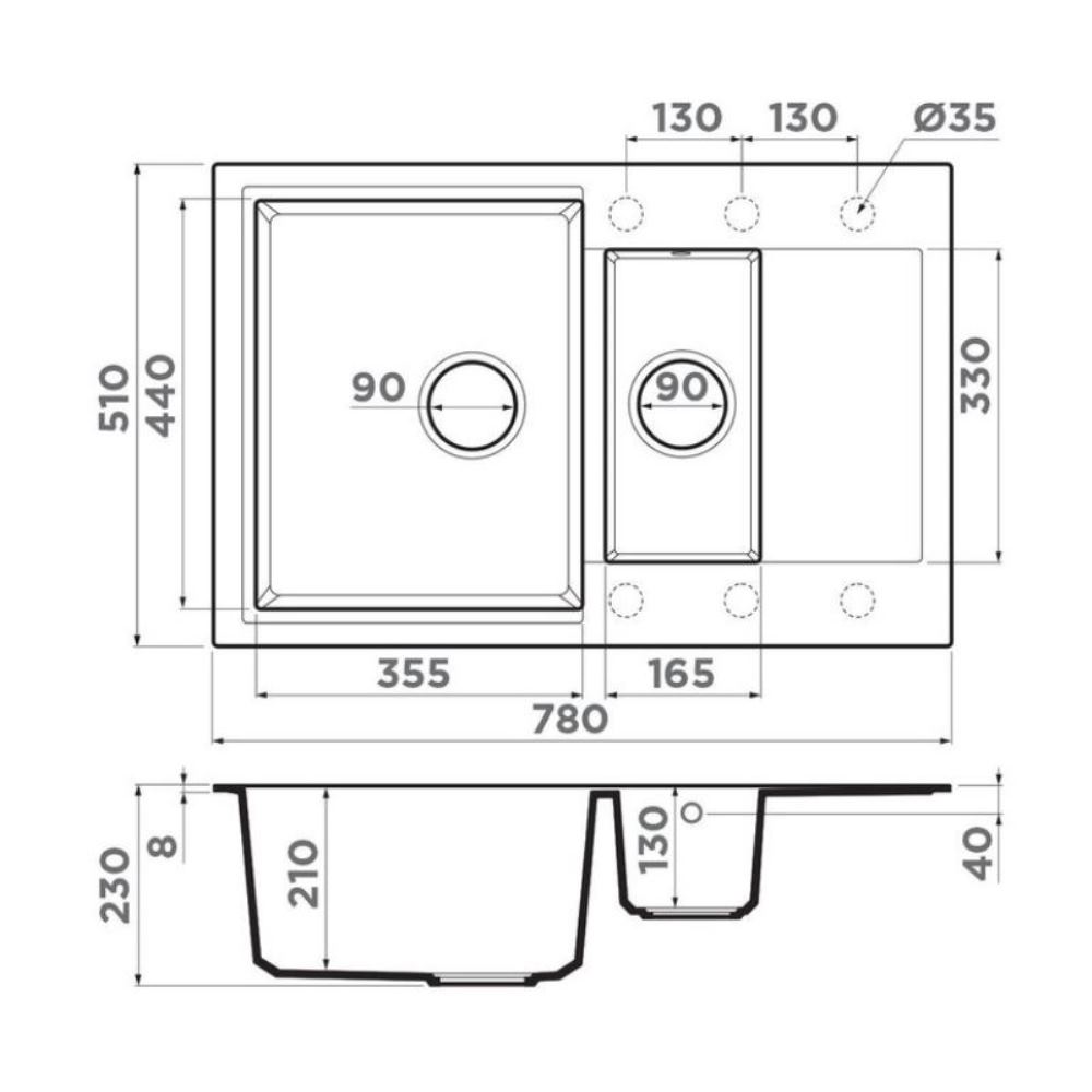 Мойка кухонная Omoikiri из коллекции Daisen 78-2T-WH имеет размеры 780х510 мм., изготовлена из искусственного гранита. Форма — прямоугольная, одна чаша без отверстия для смесителя. Сифон в комплекте. Ширина чаши 35,5. Врезной монтаж. Имеется дополнительная чаша.