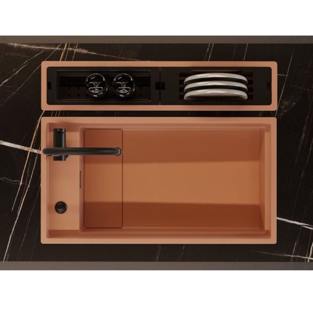 Мойка кухонная Omoikiri из коллекции Kinaru PRO 86-U/I-GB имеет размеры 860х460 мм., изготовлена из искусственной керамики. Форма — прямоугольная, одна чаша без отверстия для смесителя. Сифон в комплекте. Ширина чаши 69,4. Врезной и подстольный монтаж