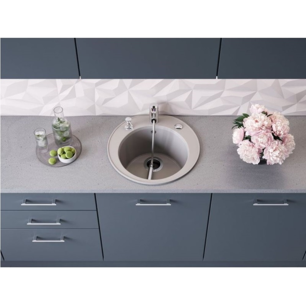 Мойка кухонная Omoikiri из коллекции Miya 50R-WH имеет размеры 505х490 мм., изготовлена из искусственного гранита. Форма — круглая, одна чаша без отверстия для смесителя. Сифон в комплекте. Ширина чаши 37,5. Врезной монтаж.