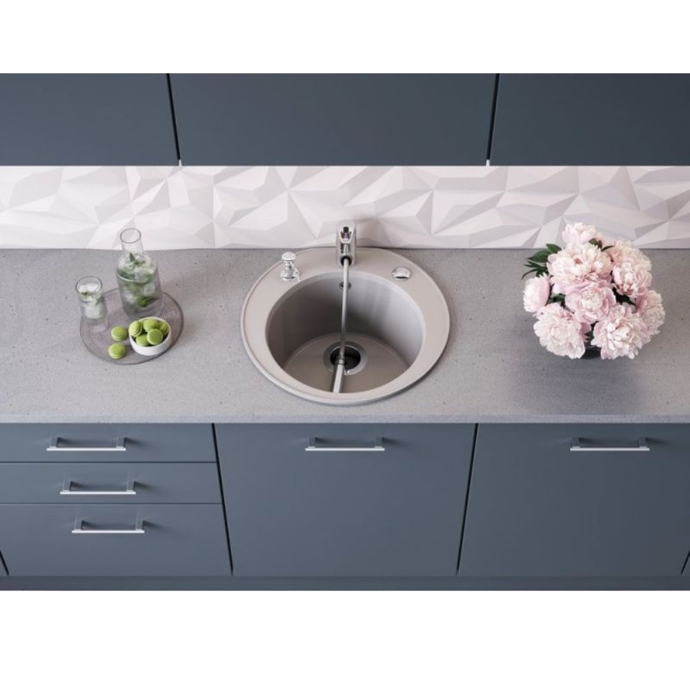 Мойка кухонная Omoikiri из коллекции Miya 50R-GR имеет размеры 505х490 мм., изготовлена из искусственного гранита. Форма — круглая, одна чаша без отверстия для смесителя. Сифон в комплекте. Ширина чаши 37,5. Врезной монтаж.