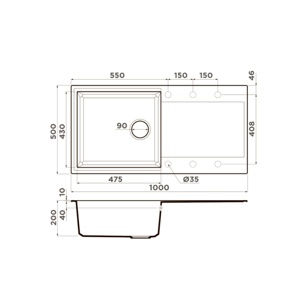 Мойка кухонная Omoikiri из коллекции Sakaime 100-SA имеет размеры 1000х500 мм., изготовлена из искусственного гранита. Форма — прямоугольная, одна чаша без отверстия для смесителя. Сифон в комплекте. Ширина чаши 47,5. Врезной монтаж. Имеется крыло.