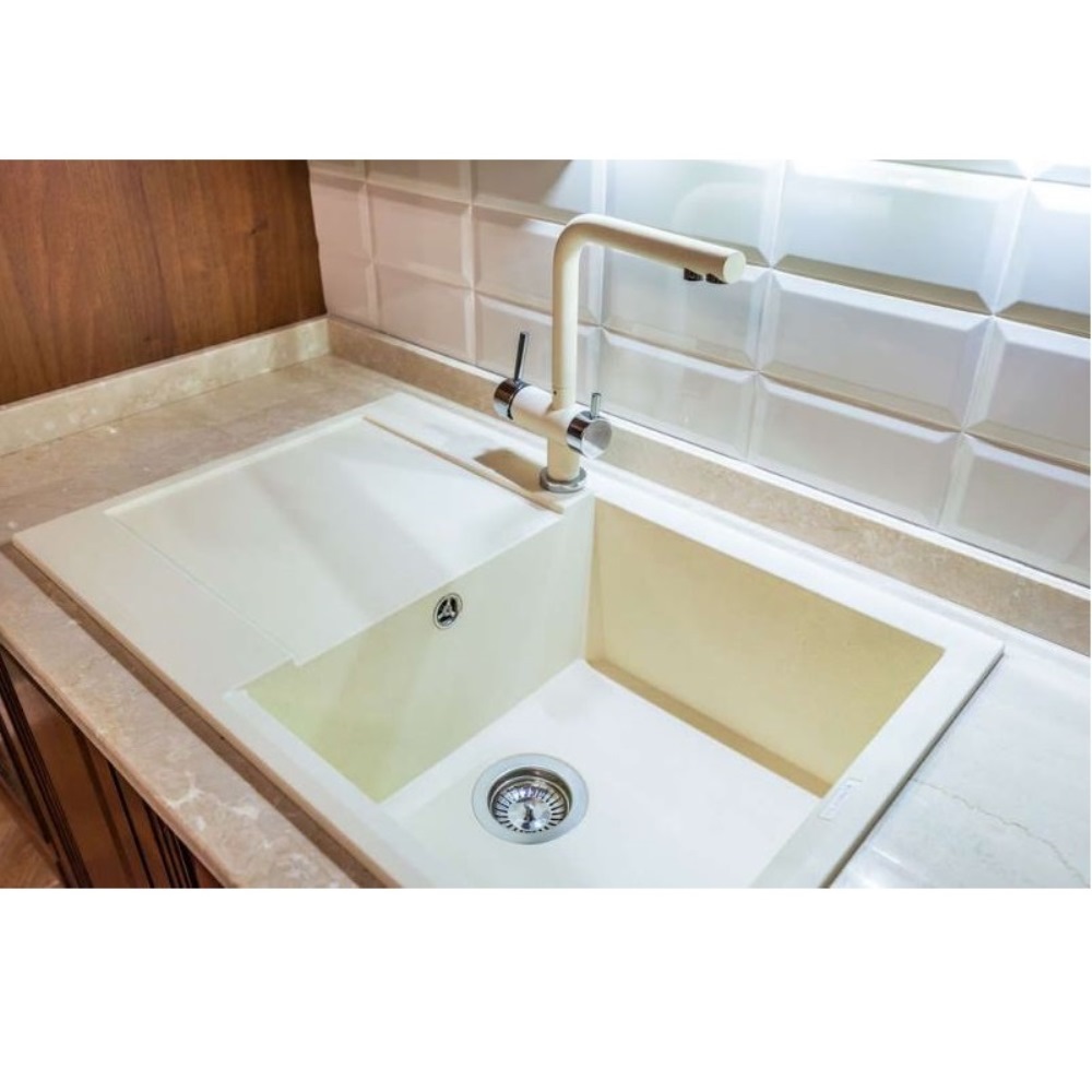 Мойка кухонная Omoikiri из коллекции Sakaime 78-PL имеет размеры 780х435 мм., изготовлена из искусственного гранита. Форма — прямоугольная, одна чаша без отверстия для смесителя. Сифон в комплекте. Ширина чаши 38,6. Врезной монтаж. Имеется крыло.