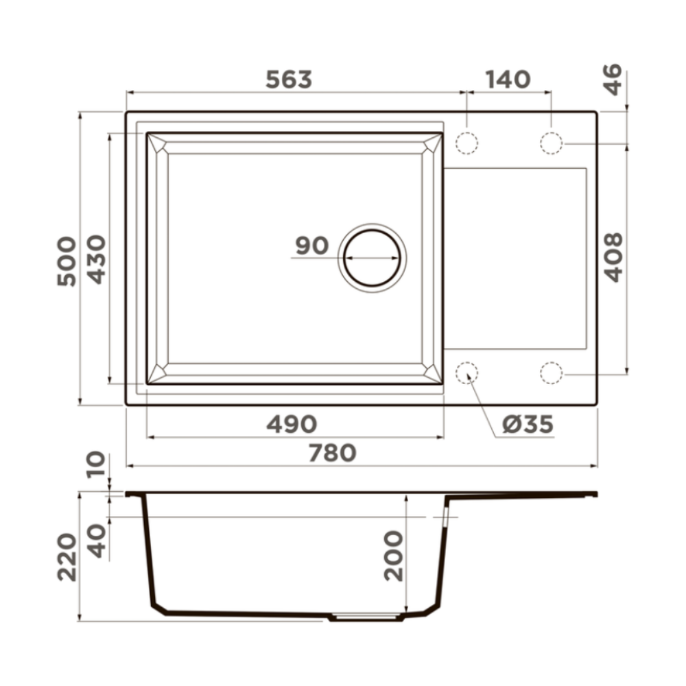 Мойка кухонная Omoikiri из коллекции Sakaime 78-LB-PL имеет размеры 780х500 мм., изготовлена из искусственного гранита. Форма — прямоугольная, одна чаша без отверстия для смесителя. Сифон в комплекте. Ширина чаши 49. Врезной монтаж. Имеется крыло.