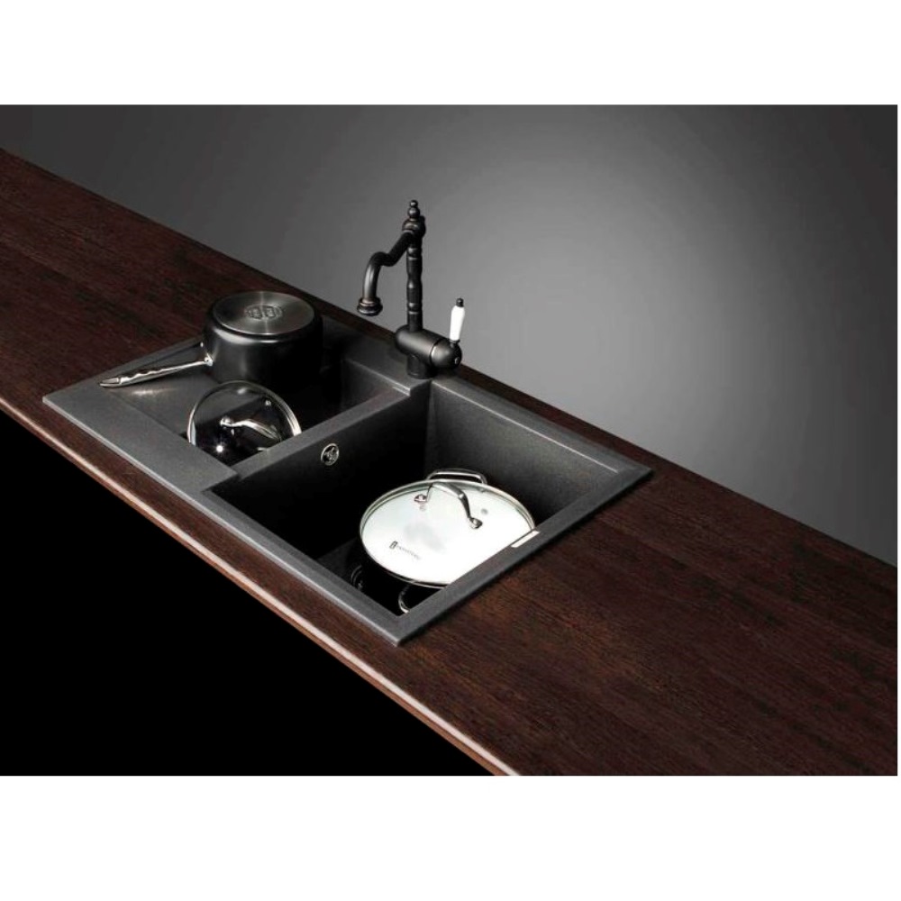 Мойка кухонная Omoikiri из коллекции Sakaime 78-2-GR имеет размеры 780х500 мм., изготовлена из искусственного гранита. Форма — прямоугольная, одна чаша без отверстия для смесителя. Сифон в комплекте. Ширина чаши 36. Врезной монтаж. Имеется дополнительная чаша и крыло.