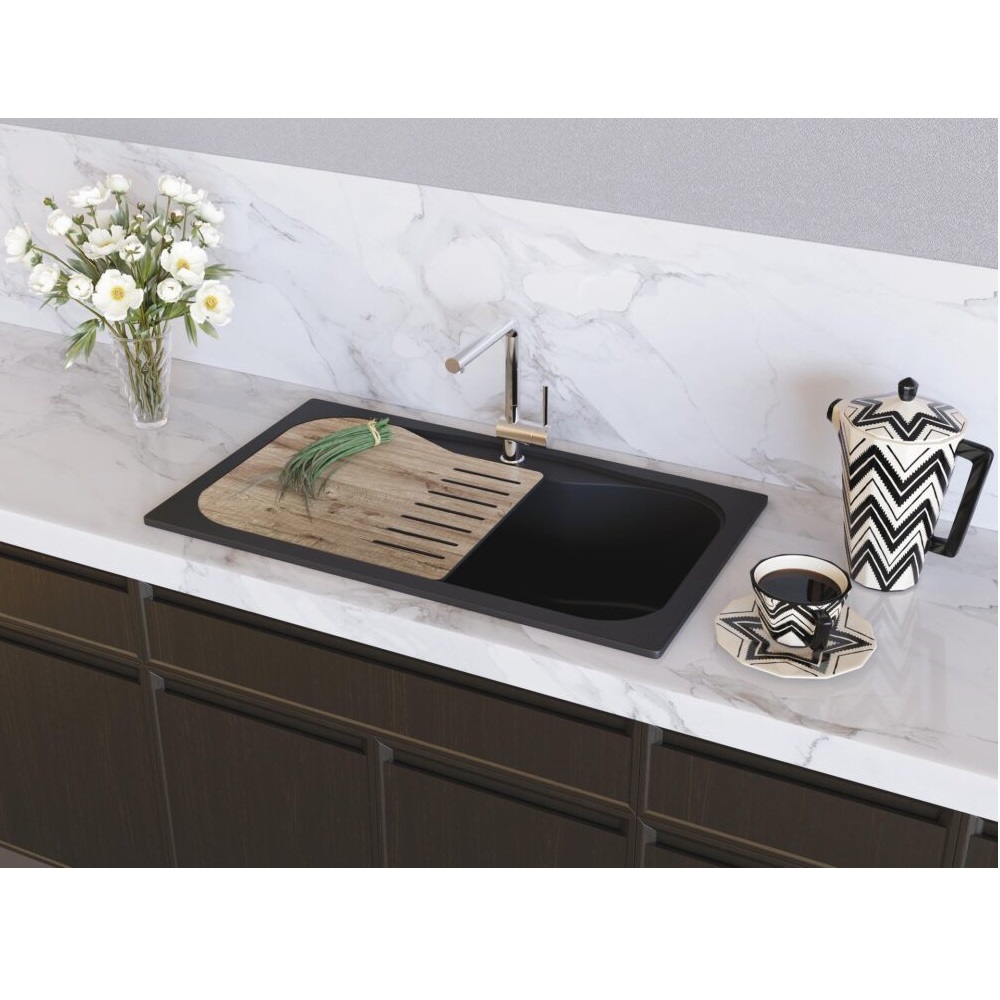 Смеситель для кухни Omoikiri Akashi оснащен рычажным управлением для регулировки температуры и напора воды. Горизонтальный монтаж на 1 отверстие. Вытяжной излив 202 мм.