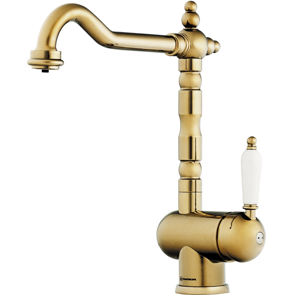 Смеситель для кухни Omoikiri Kyoto с подключением фильтра оснащен рычажным управлением для регулировки температуры и напора воды. Горизонтальный монтаж на 1 отверстие. Поворотный излив 215 мм.